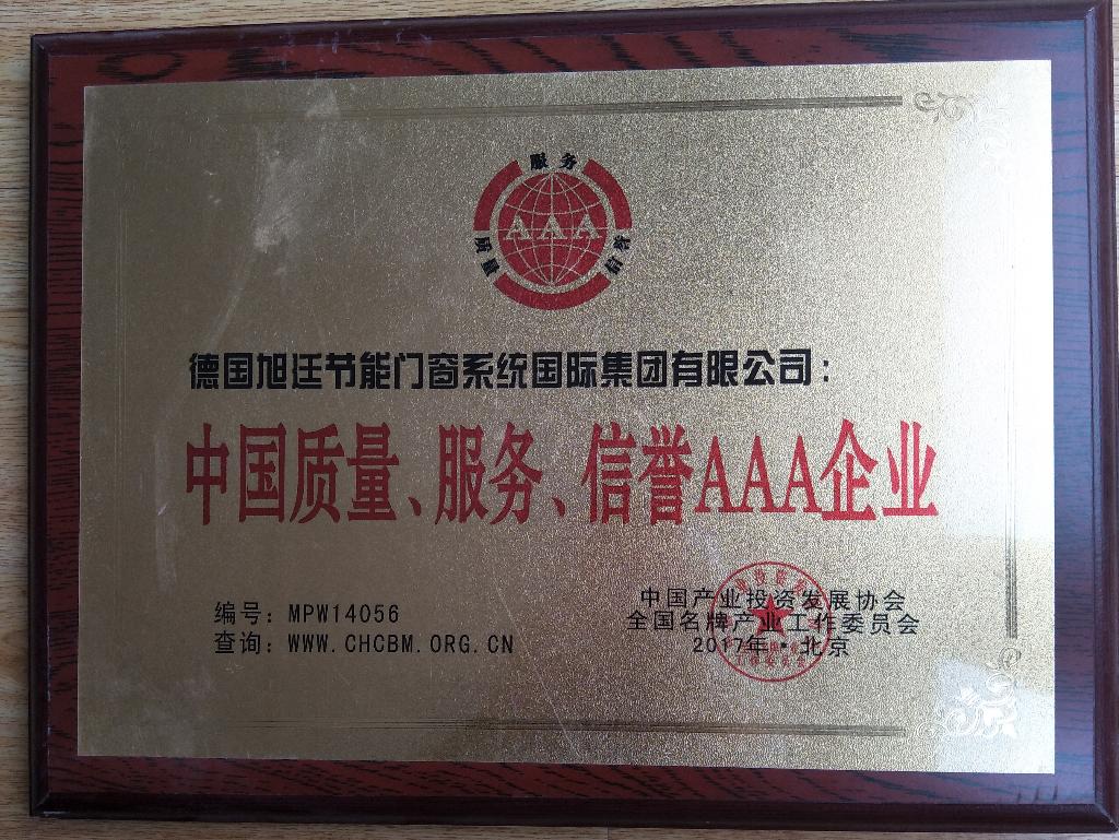 中国质量、服务、信誉AAA企业 德国旭廷节能门窗系统国际集团有限公司